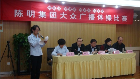 為了豐富員工業(yè)余生活,強(qiáng)化企業(yè)精神文明建設(shè),切實(shí)提高員工的身體素質(zhì),陳明集團(tuán)于2013年11月1日舉辦了以“我鍛煉、我健康、我成長、我快樂”為主題的第一屆廣播體操比賽。